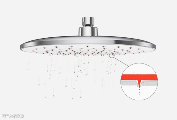 每个喷嘴都配有顶针,在每次淋浴后借助出水压力将出水嘴中的污垢自动顶出,大大提升除垢频率,解决花洒容易结垢和堵塞的问题。