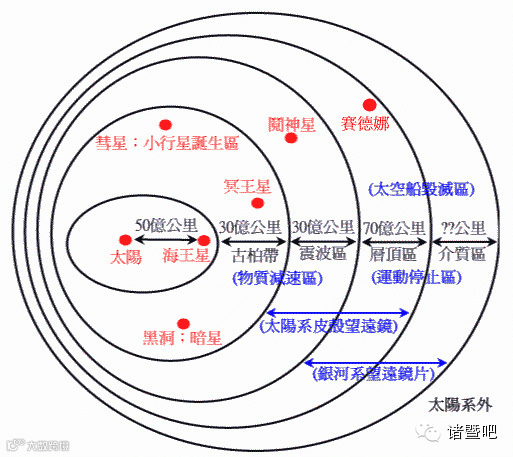 地球上的望远镜可以看到银河系,可以望见夜晚星辰,但是宇宙飞船过了一百二十亿公里,往太阳系外观看却是一片漆黑。除了往外看是一片漆黑,往内看也看不到太阳,因为太阳的光线无法传送到一百二十亿公里。