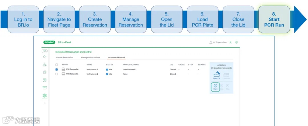 借助 BR.io云,科研人员可以远程掌控无限数量的PTC Tempo 96、Deepwell和384型号设备。远程开关盖子、一键启停运行、按需跳过协议步骤,这些曾经看似科幻的操作,如今都能轻松实现,极大地提升了实验的便捷性与灵活性。