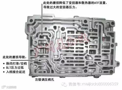 在维修AW55-50SN或AW55-51SN变速箱时,如果你遇到这些与工作油压控制有关故障现象,你在检查阀体的时候就需要注意它的调压阀孔: