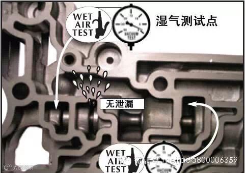 我们同时还需要对增压阀套进行测试。增压阀套的测试位置在图4中指出。如果用湿气测试法,图中标出的泄漏点不应该看到ATF油的泄漏。如果使用真空测试法,则此处的真空压力不应低于18英寸汞柱。