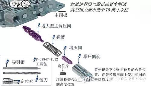 主调压阀孔的修复需要使用配套的专用工具F-59947-TL12进行铰孔操作,然后装上与之配合的主调压阀和增压阀套,由于铰孔使阀孔增大了尺寸,因此修包59947-12K内所含的主调压阀、增压阀套、增压阀芯、以及弹簧都是重新设计的,以符合OEM的原厂液压规范。