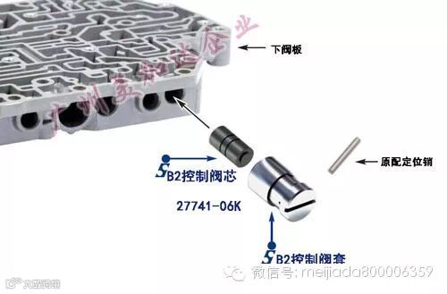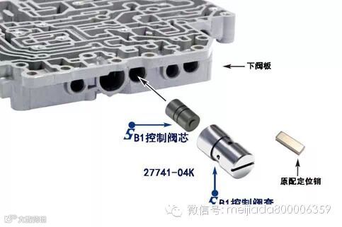 B1制动器也容易反复失效,它的失效有2个主要因素,一个就是上面提及的离合器作用控制阀卡滞引起的,另一个原因是位于下阀板的B1控制阀套(见图2)。在U151和U250E变速箱中,B1制动器在2、4、5档时作用,而B1控制阀和阀套就是用来控制流向B1制动器的油路的。常见的失效点在于阀套的内壁容易被阀芯所磨损,从而产生泄漏。大量的油压泄漏会降低B1离合器的供油,从而使B1容易烧毁,同时还会产生各种换挡品质问题,比如2-3或4-3换挡时两档干涉,1-4档手动换挡时会产生冲击等。