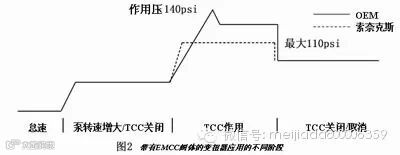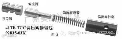 A604和A606中的烧行星轮现象是其中较典型的一例。为了解决这个问题,SONNAX重新设计了这个系列的柱塞阀。见图3,在这个变扭器调压阀修包中(包含一个开关阀和一个偏流阀),开关阀中间的那个圆柱的直径比两边的要稍小,这就起到了一个节流孔的作用,用来控制进入变扭器的油流量。当油通过了这个柱塞阀后,TCC的压力控制就由旁边的偏流阀来控制了。这个偏流阀的特别之处在于其内部有个内置调节阀,用来限定TCC的作用压力。用SONNAX设计的这个阀体修包更换了OEM柱塞阀后,TCC作用压力就如图3中的虚线所示,压力峰值没有了,TCC作用压力被控制在一个合理的范围内。