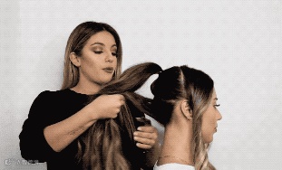Step3:前面的头发进行倒刮处理,同样扎到一起~