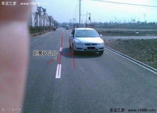 当我们的视线通过棉板和A柱的交角和中线重合时,车身正好离中线是60公分。