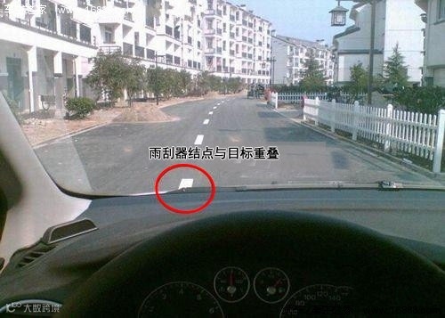 当右雨刮器结点和路边重合时,方向稍向左拉,就可以达到离路边10厘米靠边停车的效果。