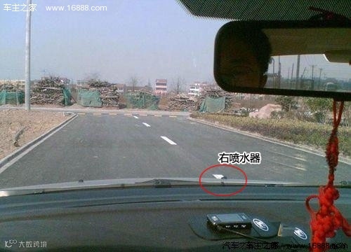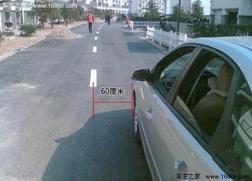当右喷水器和路面边目标重叠时,车身离路边还有60厘米。