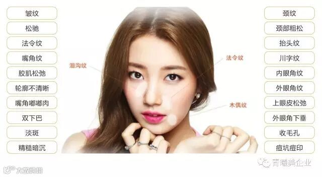 可解决肌肤松弛下垂、皱纹、粗糙、毛孔粗大、肤色暗沉等衰老问题,消除表情纹、修复断裂的真皮纹,提升肌肤紧实度,从根源上解决肌肤衰老。