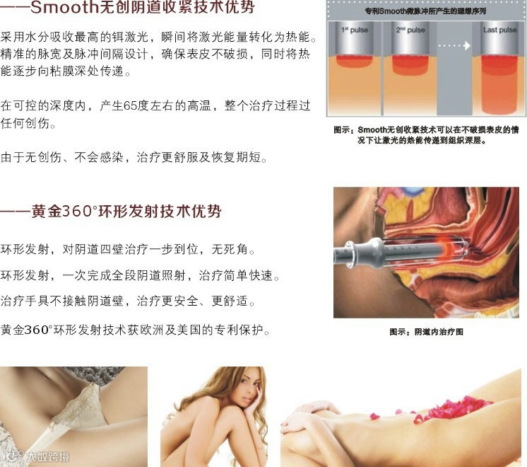 “大多数妇女都是希望重返年轻,提高性生活满意度,而私密激光紧致治疗既安全又快速,只需15分钟左右的时间,没有副作用,治疗无痛、无需麻醉,当天完成治疗就可以恢复工作,只需5天时间就可恢复性生活,这样的治疗简直就像施魔术一样神奇。”