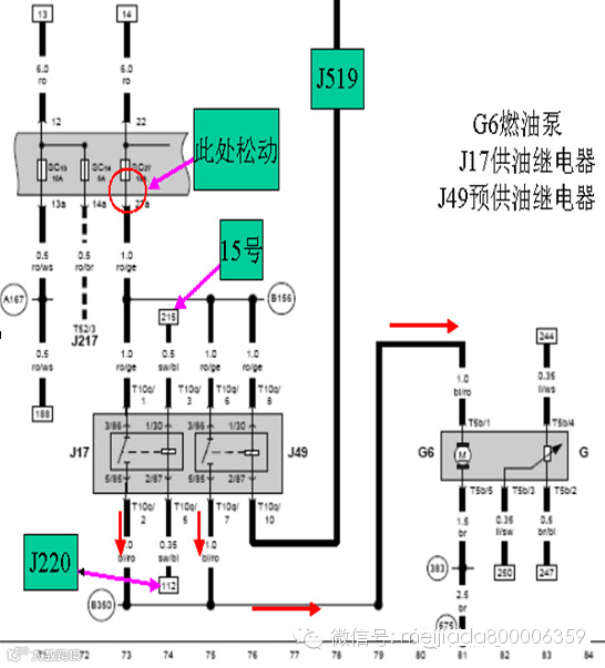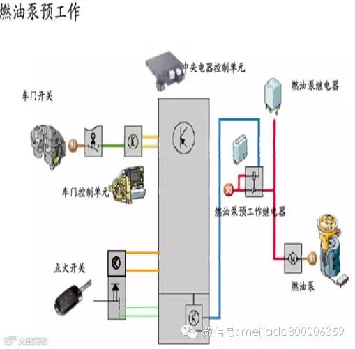 另一路是正常启动时的供油。发动机电脑根据启动和转速信号来控制油泵继电器J17。给油泵供电。