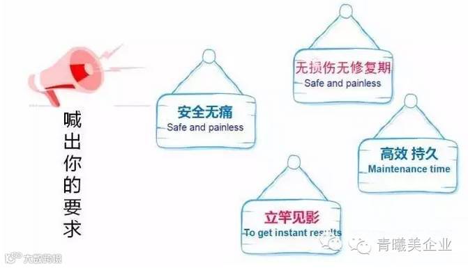 2、非剥脱性激光,一次性改善鱼尾纹(动、静态纹),3次一疗程(治疗每次间隔20day-30day),效果维持2~3年!疗程短,见效快,效果持久