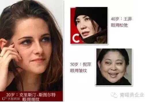 前期衰老 从25岁开始,色素沉积,肌肤特征发生改变,上眼睑开始松弛,原本漂亮的双眼皮可能会呈现出“三角眼”及轻度鱼尾纹。 中期衰老 女性自35岁开始,黑眼圈出现,川字纹、深度鱼尾纹、眶下细纹、眼周皱纹明显,色素沉积不均,眼角松弛下垂加重。