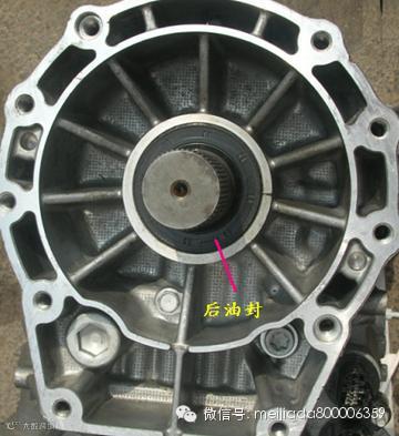 再次试车过程中发现变速箱与分动箱连接处严重漏油(ATF),为什么会出现这种结果呢?一切操作都是按照要求一步一步进行的而且ATF的加注量也符合标准。当把分动箱从变速箱上抬下来一眼就看到问题了:原来是变速箱输出轴油封掉下来了,仔细检查油封本身并没有损坏但考虑还是把修理包里的新油封更换上(注:解体维修时这个油封没有换),再次安装完毕后添加缺少的ATF进行路试,没想到刚一出厂变速箱应该是刚刚执行四档时漏油现象再次出现,没有办法再次将分动箱抬下来结果发现输出轴油封又掉下来了,是什么原因导致这个油封频繁掉下来呢?油封质量还是另有其他问题?在接下来的分析和检查过程中并没有直接发现疑点,但对比新旧油封还是很明显的发现原车油封(旧的)要好于修理包里面的油封,于是再次小心翼翼把原来的油封安装到正确位置(安装时内外径的松紧程度感觉上还可以),为了防止再次出现问题油封安装完毕后又在其外部边缘涂了一些固定胶(原则上是不允许的也是没有必要的)。