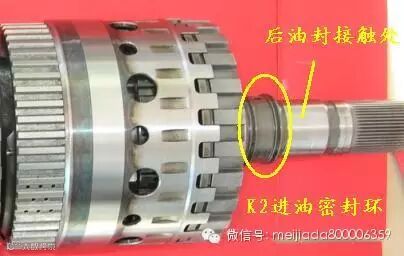 故障排除:重新更换烧损摩擦片同时更换两个旧的没有问题的离合器进油密封环见图五,同时还是将原来的输出轴油封安装回去,装车后反复试车故障彻底排除。