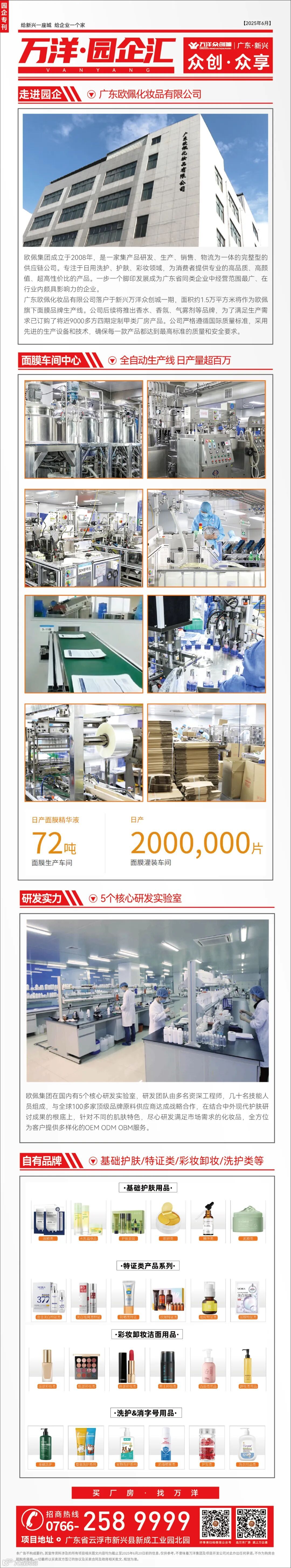 万洋·园企汇|云浮市化妆品协会会长单位、专研及生产护肤面膜企业:广东欧佩化妆品有限公司