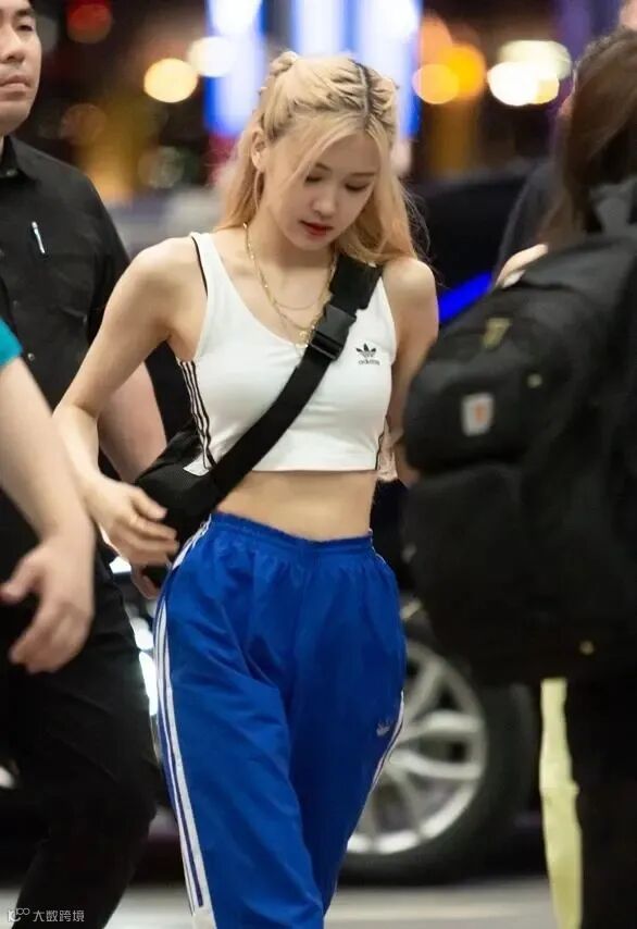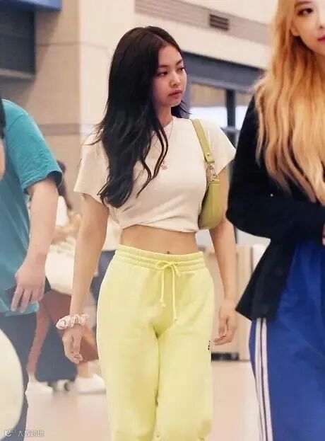 Jennie小可爱就穿过不少次运动风的长裤,很有街头cool girl的感觉~