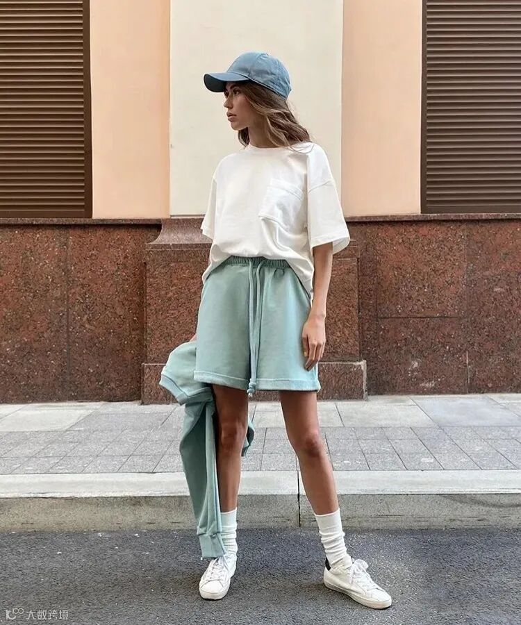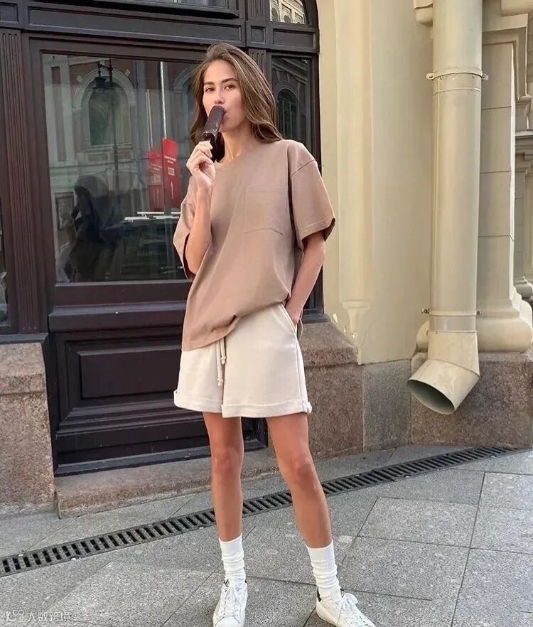 因为运动风的短裤款式多数比较宽松拖沓,为了避免穿成55分,记得塞衣角哦~