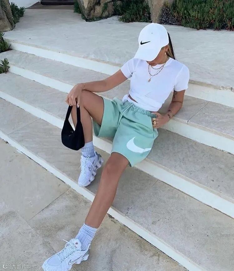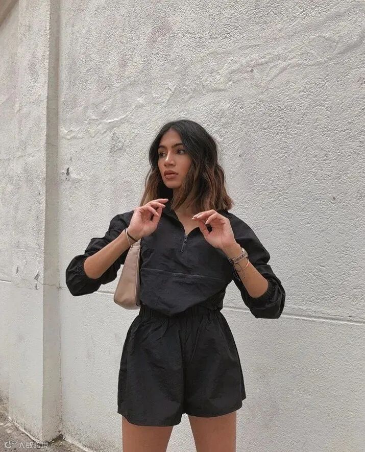运动风格的短裤想要穿出时髦感,不像”正在去健身房的路上“的话,可以选择出挑的颜色做搭配。