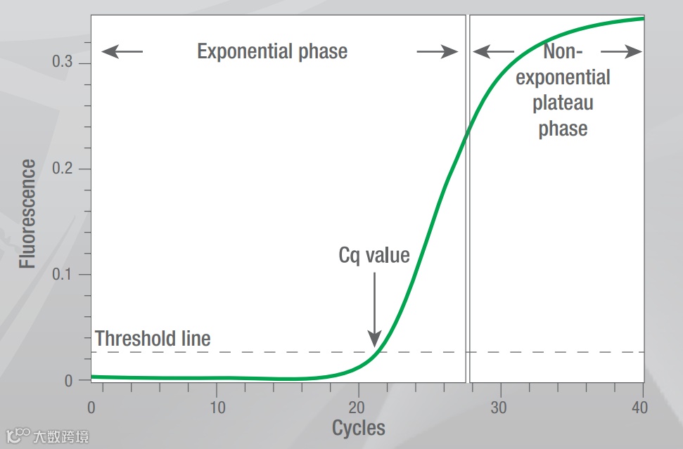 如果阈值设置在 PCR 反应的指数增长阶段之外,Cq 值将无法准确反映样本中的 DNA 浓度,其结果与生物学无相关性。