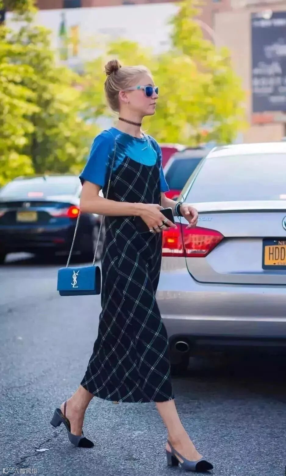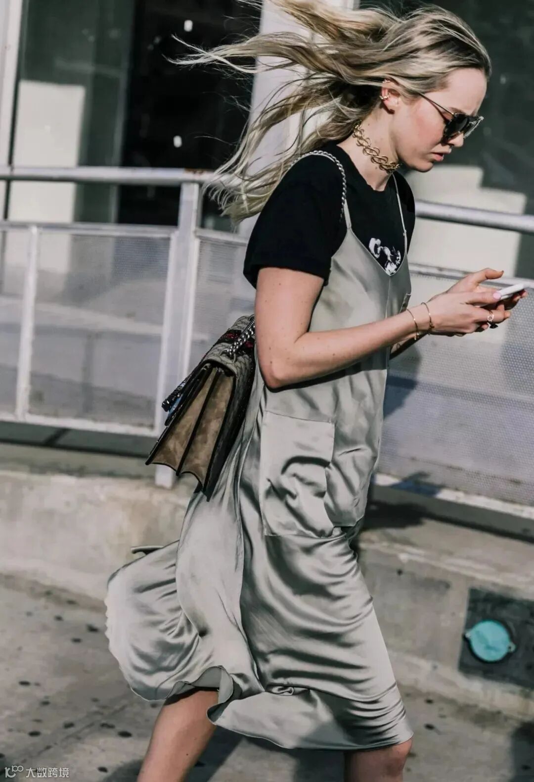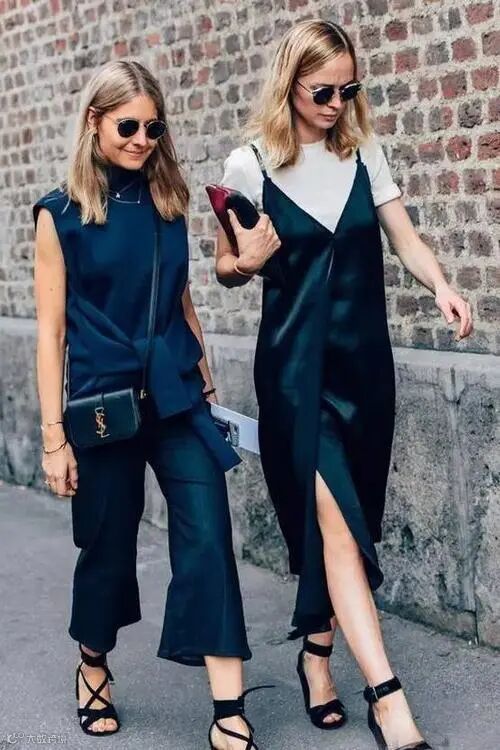 叠穿的时候可以选择轻薄的丝质吊带裙,走路都自带飘逸感。