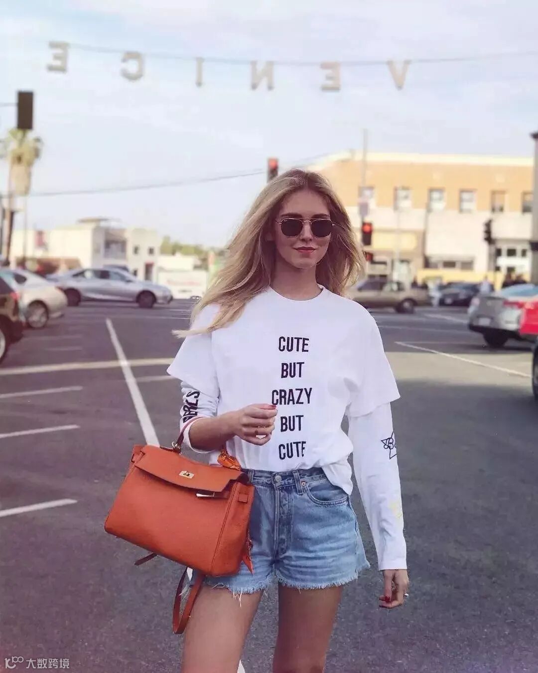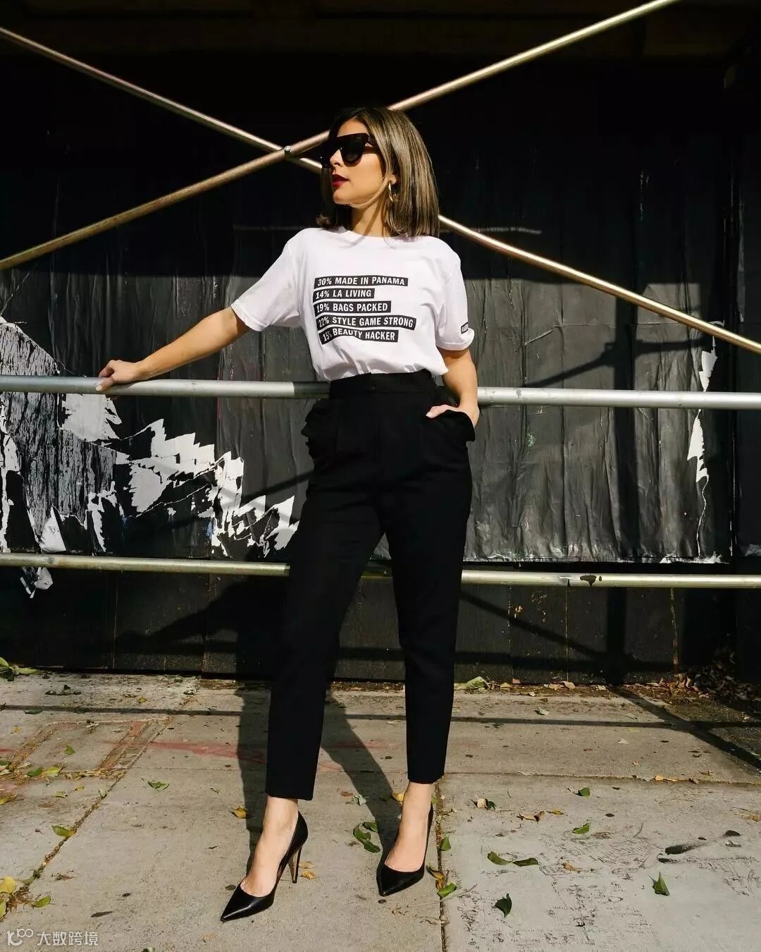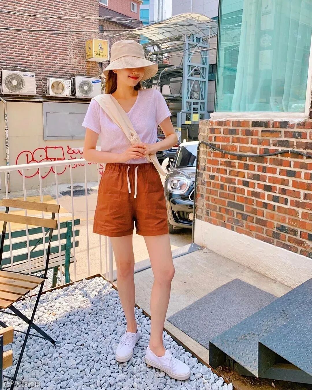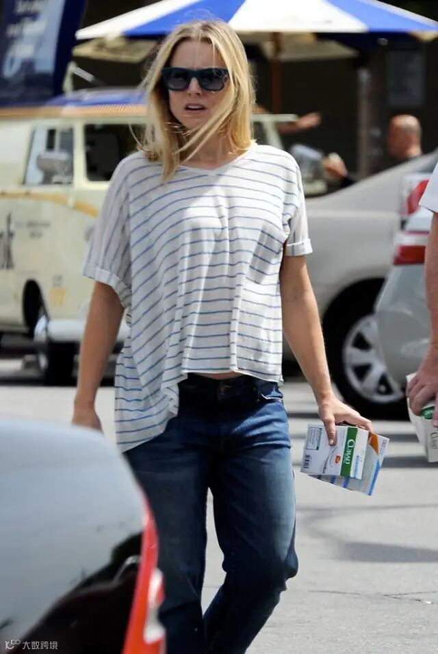 除了打结,塞衣角也是一个好办法,能很好地突出腰线,毕竟长腿有时候是要“装”出来的~