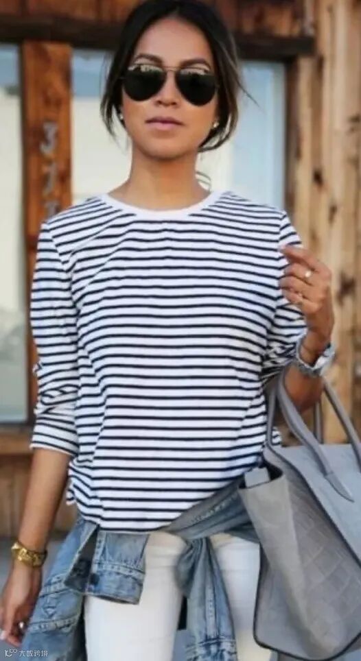 条纹长T也很不错,超级白搭,和什么颜色的T恤都能配一脸。