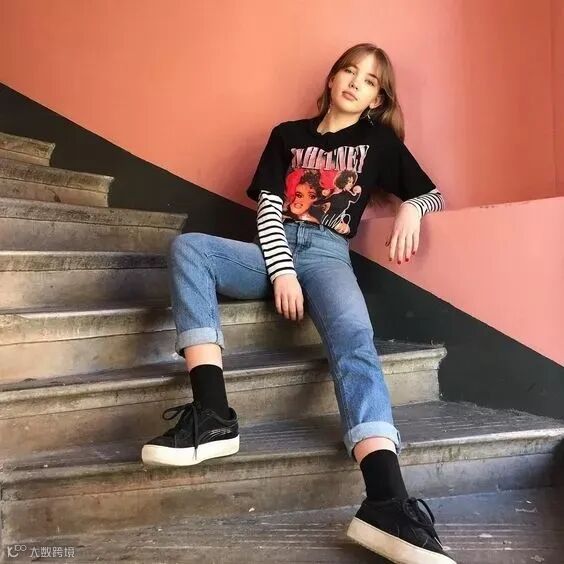 长袖T+短袖T的美式叠穿法不用我多说,大家都知道有多火,明星爱豆街拍达人几乎都有过这样的look。
