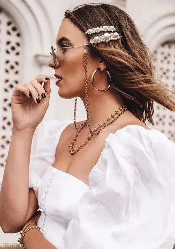 用一字夹把脸颊两侧的头发别在耳后,能防止头发跑到前面,还具有“防风”功能哦~