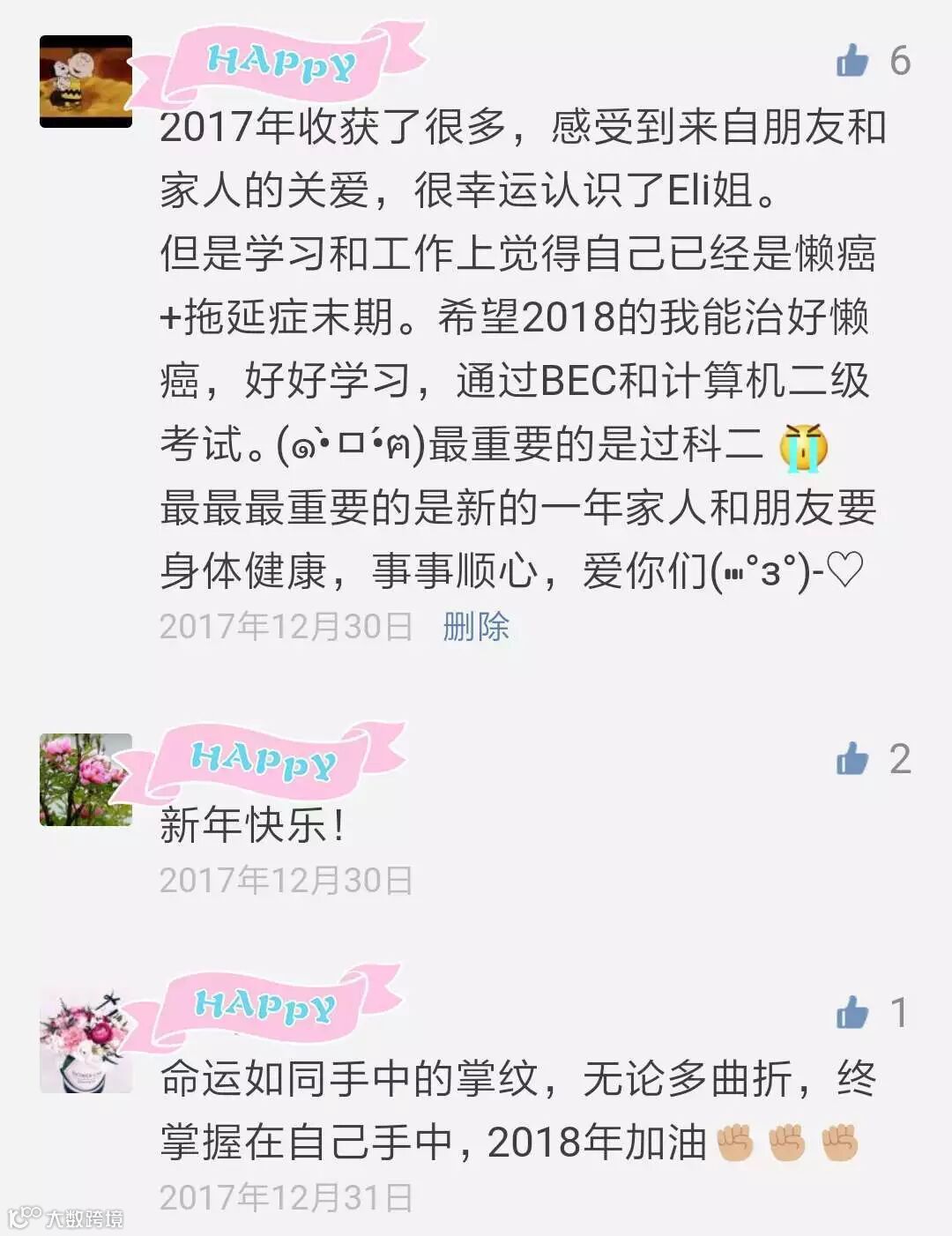 还记得2017年末的时候我们开展的一次互动吗? 那就是 # Ei与你互动 | 聊聊即将来到的2018年 # 活动中,大家踊跃地在留言板上留下了你对2018年最想说的话~