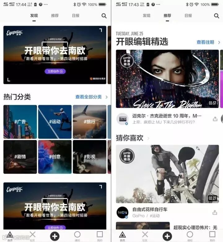 讲真,里面的短视频都十分有趣,关键是,还涨知识!!这是一款汇聚全球优质短视频的APP,每日精挑细选优质高清短视频,像它的名字一样,让你开眼!随时随地,打开新世界。