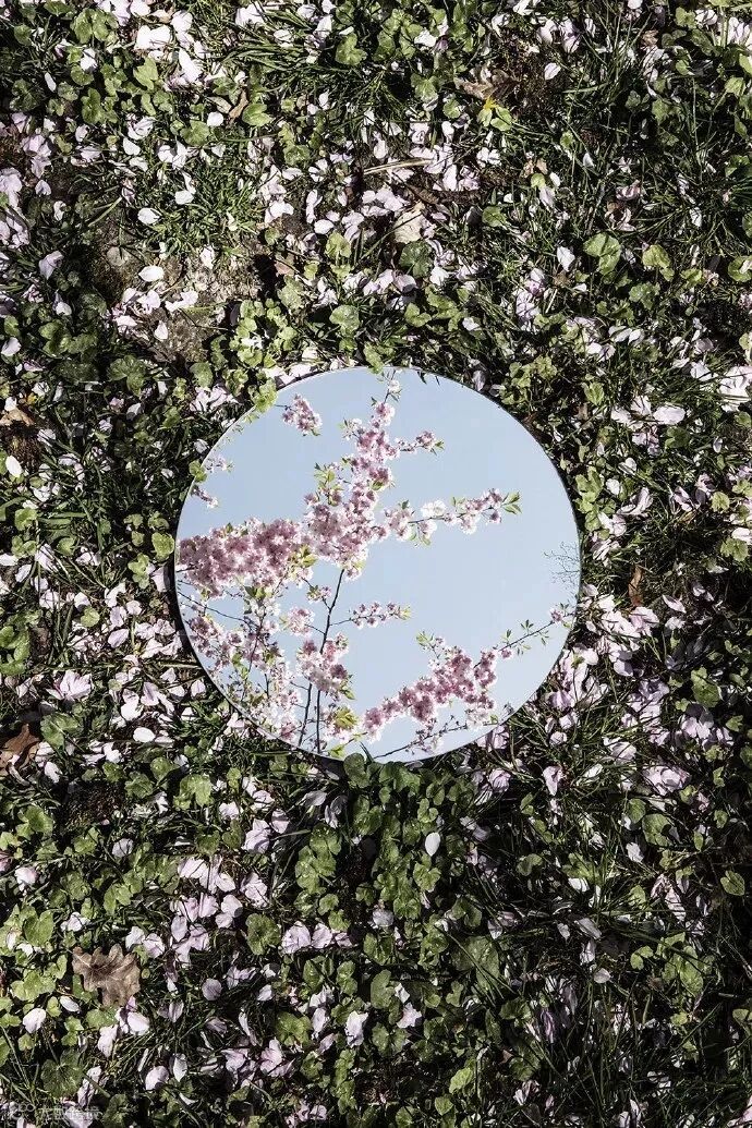 摄影师Sebastian Magnani的这组作品直观地向大众展示了如何使用镜面来构建个人世界。落樱、秋叶等本是带有一丝哀愁的事物,但是摄影师巧妙地利用了圆形的镜面来反射出盛开的樱花与萌发的新芽,此时万物的由生入死同时得到呈现,整个画面瞬间充满诗意,整体构图上更为丰富。也许传说中的镜花水月,也不过如此了。