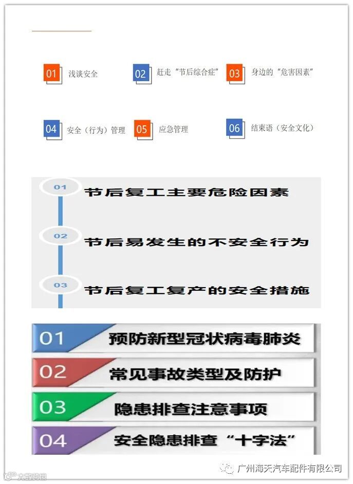 为确保春节后企业复工复产安全平稳有序,海天赤坭工厂组织各部门负责人展开节后复工复产安全防范工作。