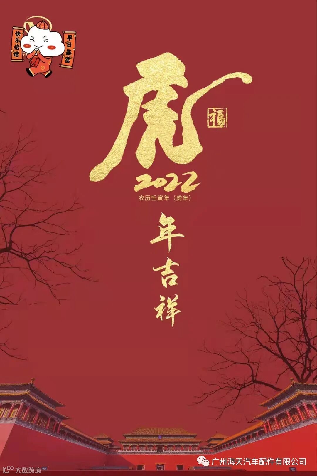 牛去虎来一年复始,春明日丽万象更新。值此新年来临之际,广州海天汽车配件有限公司&广州海天塑胶有限公司向各位合作伙伴、全体员工以及关心海天的社会各界朋友表示衷心地感谢,并致以新年最美好的祝愿!