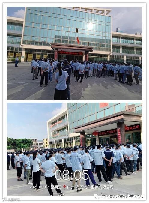 2021年5月2日8:00整,海天汽配工厂&海天包覆工厂在两位工厂长的带领下,组织以“交通安全"为主题 的全体员工一级安全培训教育。