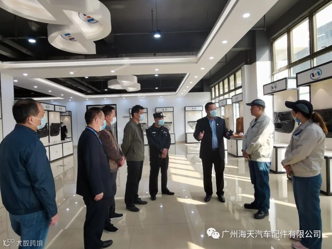 2020年10月29日上午10:30分许,由花都农业农村局牵头,花都区副书记、政法委书记李晓东先生带队,为推动节前安全生产莅临海天调研,赤坭镇镇党委副书记龙德海先生、安委办副主任叶湛钳先生及赤坭镇安监部、派出所等各执法部门陪同。