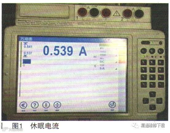 执行电源诊断的检测计划,识别到休眠电流不正常,大于1000mA频率15次。执行ABL文件power down让车辆强制休眠,休眠后可听见方向机嗡嗡响,测量方向机休眠电流540mA左右,断掉方向机供电插头,休眠电流正常,异响消失。插上方向机插头不正常的休眠电流如图1所示,断掉方向机插头后正常的休眠电流如图2所示。