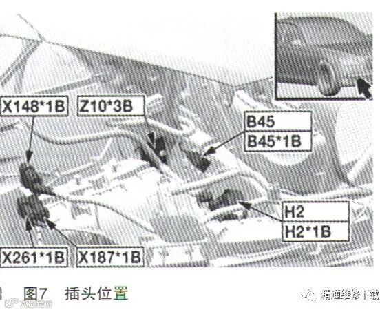 当拔下这些保险丝供电输出插头,挨个测量供电时发现Z1*7B的3针脚有12V电压,对应保险丝F46,其他针脚电压均为。。查询电路图发现F46是为水箱百叶窗供电的,当拔下X148*1B测量百叶窗线束时发现此插头前端是六根线且后端是两根线,去往PDC的线束插接点X187*1B前端是三根线且后端是六根线,查询这两个插接点的电路图发现这两个插头插反了,如图6、图7所示。