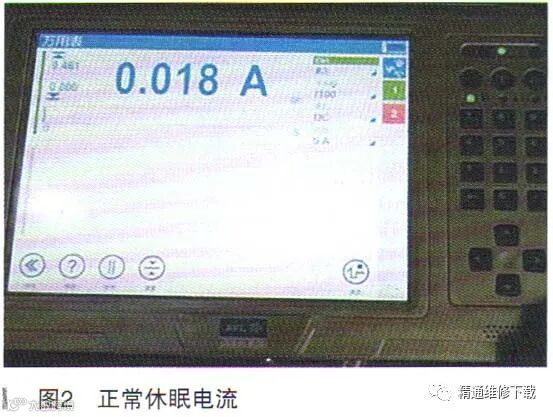 执行电源诊断的检测计划,识别到休眠电流不正常,大于1000mA频率15次。执行ABL文件power down让车辆强制休眠,休眠后可听见方向机嗡嗡响,测量方向机休眠电流540mA左右,断掉方向机供电插头,休眠电流正常,异响消失。插上方向机插头不正常的休眠电流如图1所示,断掉方向机插头后正常的休眠电流如图2所示。