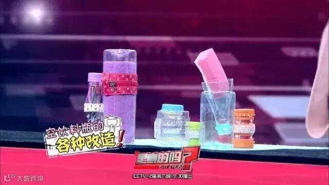 女嘉宾的方法是先将两个饮料瓶的瓶底切下来,然后在瓶子切口的边缘外侧涂一圈热熔胶,再将拉链分别黏在两个瓶子的切口处外侧,再拉上拉链,一个便携的收纳盒就做好了。
