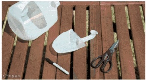 第一步,将饮料瓶的瓶口部分,用剪刀剪下来。