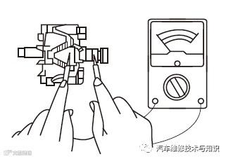 ④ 观察万用表上所指示的电压值。如果电压随发电机的转速升高而逐渐增大,则发电机工作正常。如果无显示电压值,则发电机不发电,应对发电机进行分解检查。