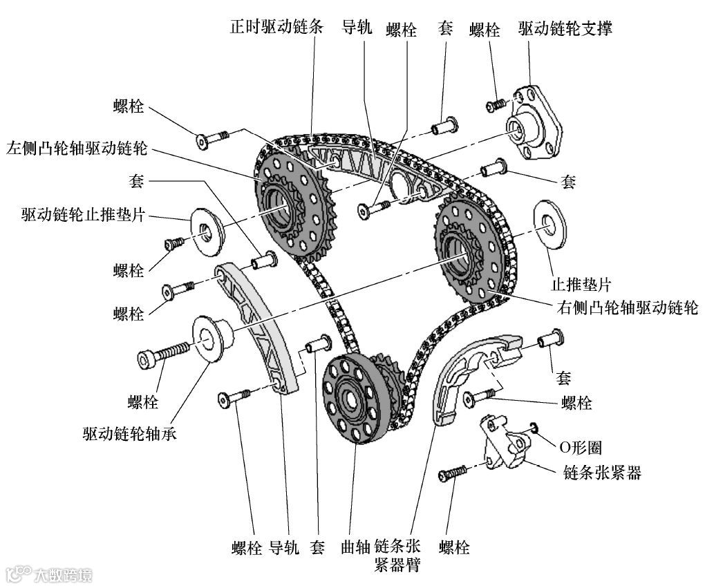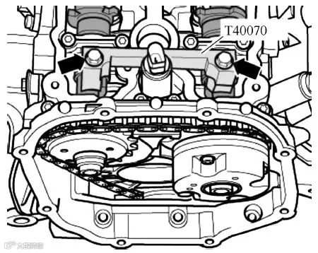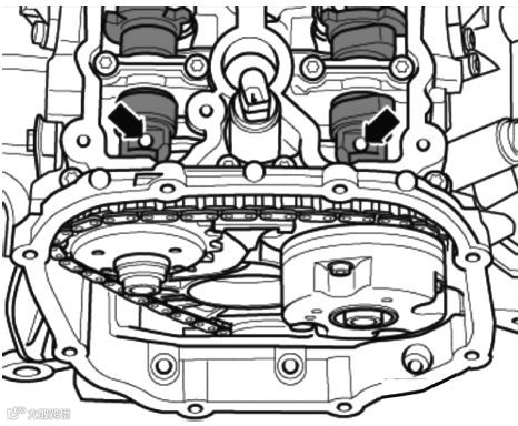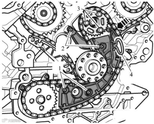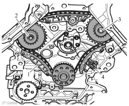 (10)按上述方法拆卸右侧凸轮轴正时链条。