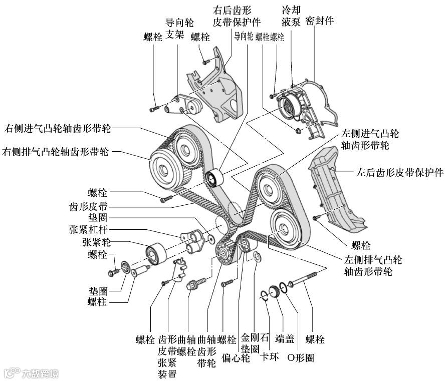 1. 正时系统部件图 ▼
