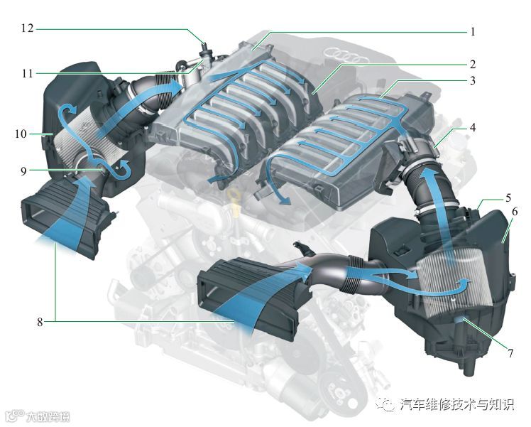 奥迪6.3L W12FSI发动机进气系统 ▲