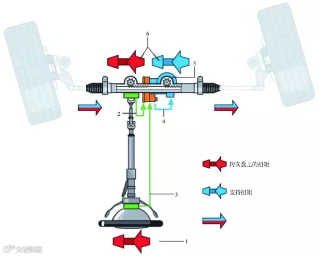 6—转向盘上的扭矩和支持扭矩的总和就是转向器上的有效扭矩,由该扭矩来传动齿条。