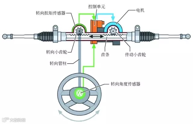 的大小。转向管柱电子控制单元中的电子装置分析这个信号。