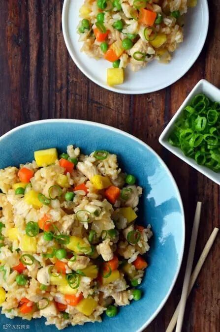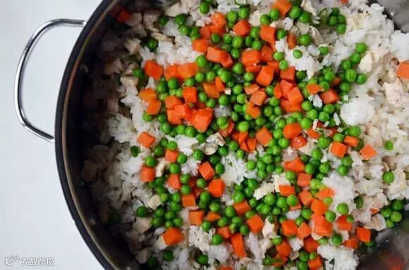 ▷做法: 将大米浸泡几小时,胡萝卜、土豆切小块,青豆浸泡好,鸡肉加油炒到半熟,把米饭上锅蒸制半熟后,把胡萝卜、土豆、青豆、鸡肉等埋入米中,然后在锅中放几滴核桃油或者橄榄油,闷20到30分钟即可。