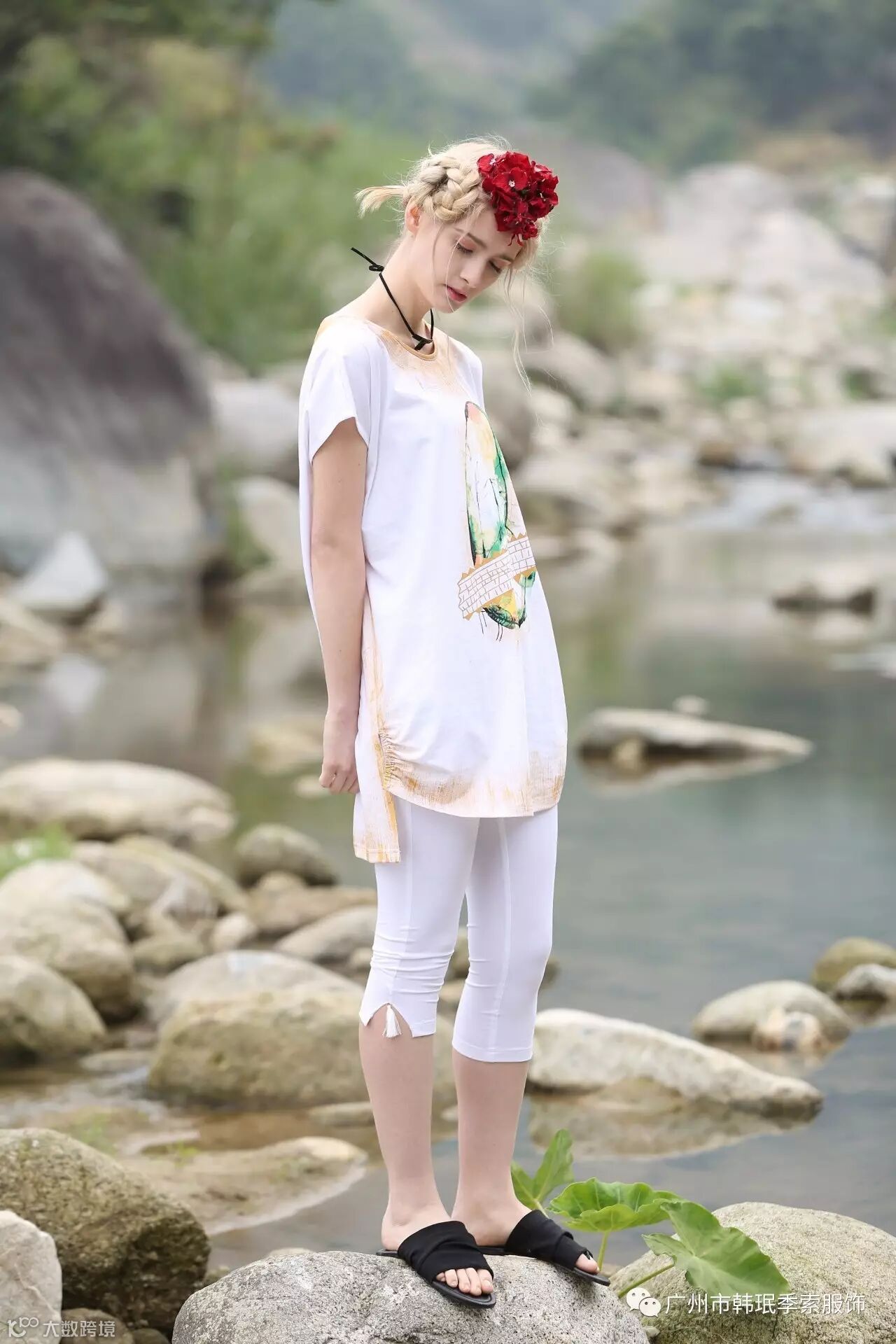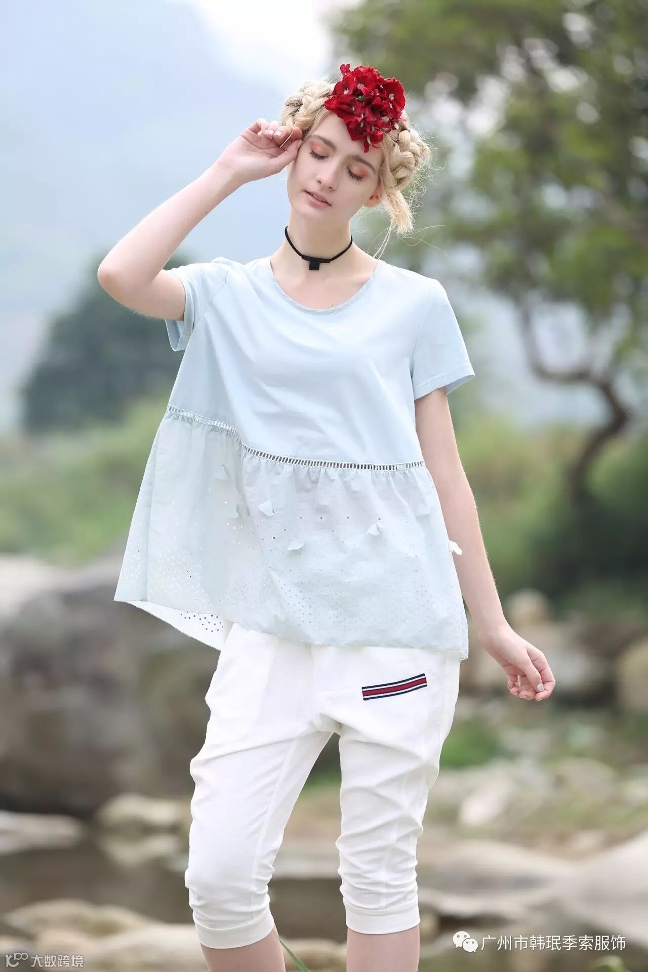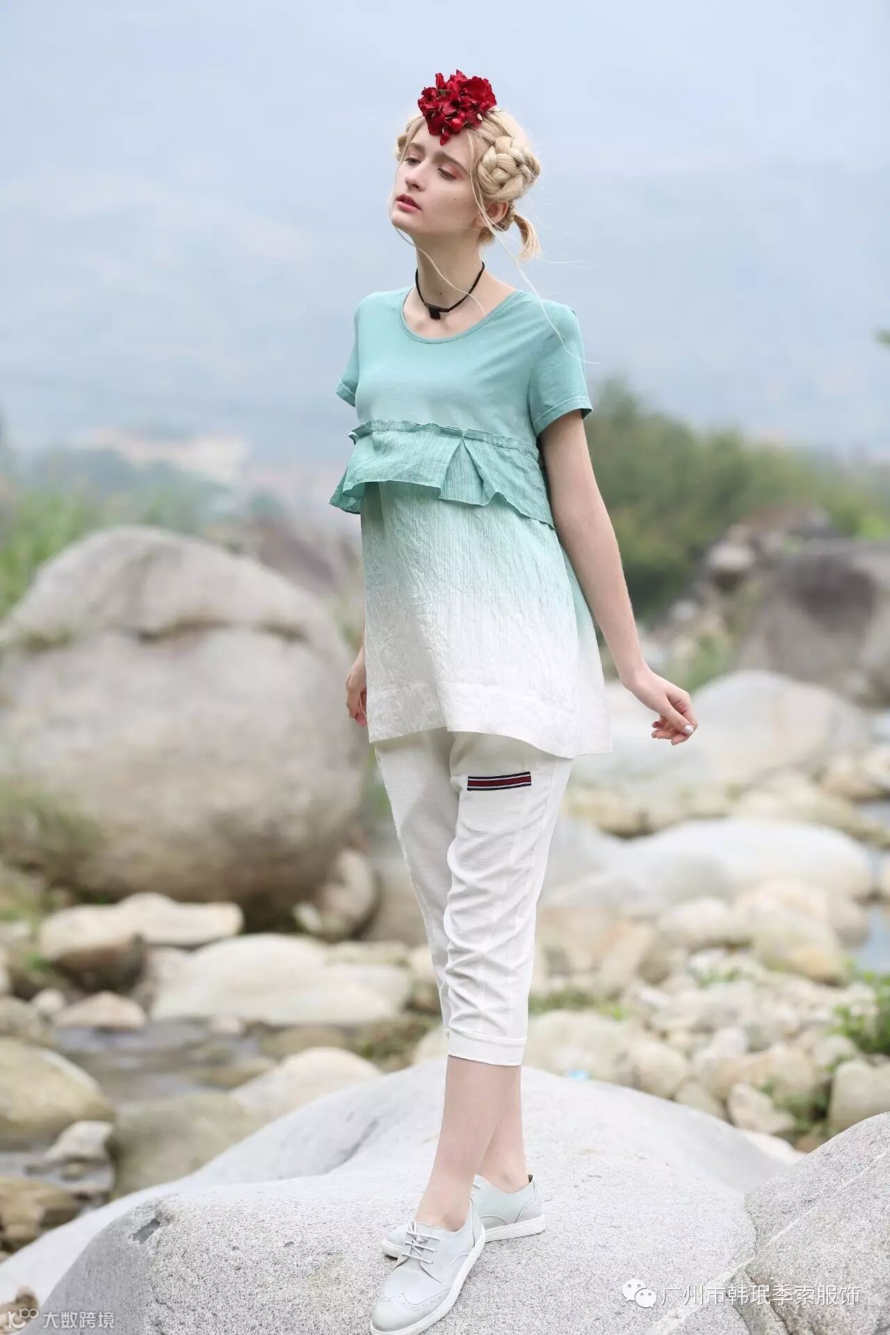 夏季除了海边,有山有水的地方也是不错的选择哦,青蓝色的上衣,轻盈凉爽,清新的渐色,与周围的环境完美融合,配上一头飘逸的长发,增添了几分灵动之美,有种“人在景中更似景”的感觉。