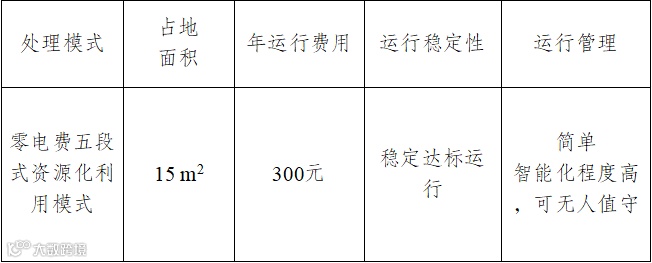 第四段FBBR处理单元仅一台40w的小风机需要提供电能,这台小风机既起到提供氧气的作用,也起到气提推流的作用无需水泵即可低成本进水,并采用小型分布式供电方式,建设成本低,占地面积小(户均用地面积可控制在0.5 平方米),建设周期短(一个村2周),无需电费,全年运营费用不足300元,村民自发维护即可。